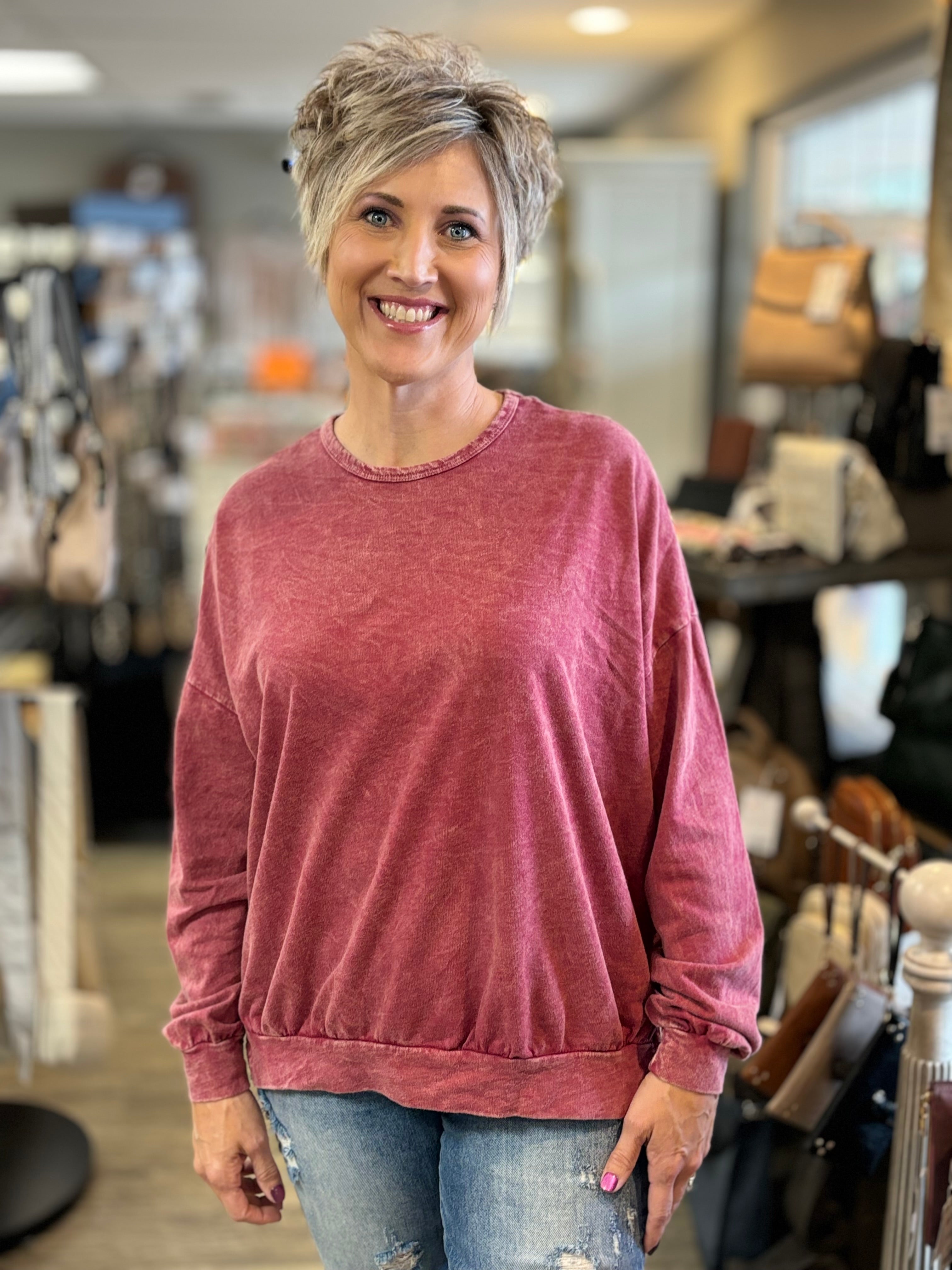 Introducing our mineral wash super soft sweatshirt, designed for ultimate comfort and style. This cozy pullover features a unique mineral wash that gives it a trendy, lived-in look while ensuring a soft, luxurious feel against the skin. With a relaxed fit and classic crew neckline, it’s perfect for lounging at home or pairing with your favorite jeans for a casual day out. The breathable fabric makes it an ideal layering piece for any season. Elevate your everyday wardrobe with this versatile and stylish sweatshirt!