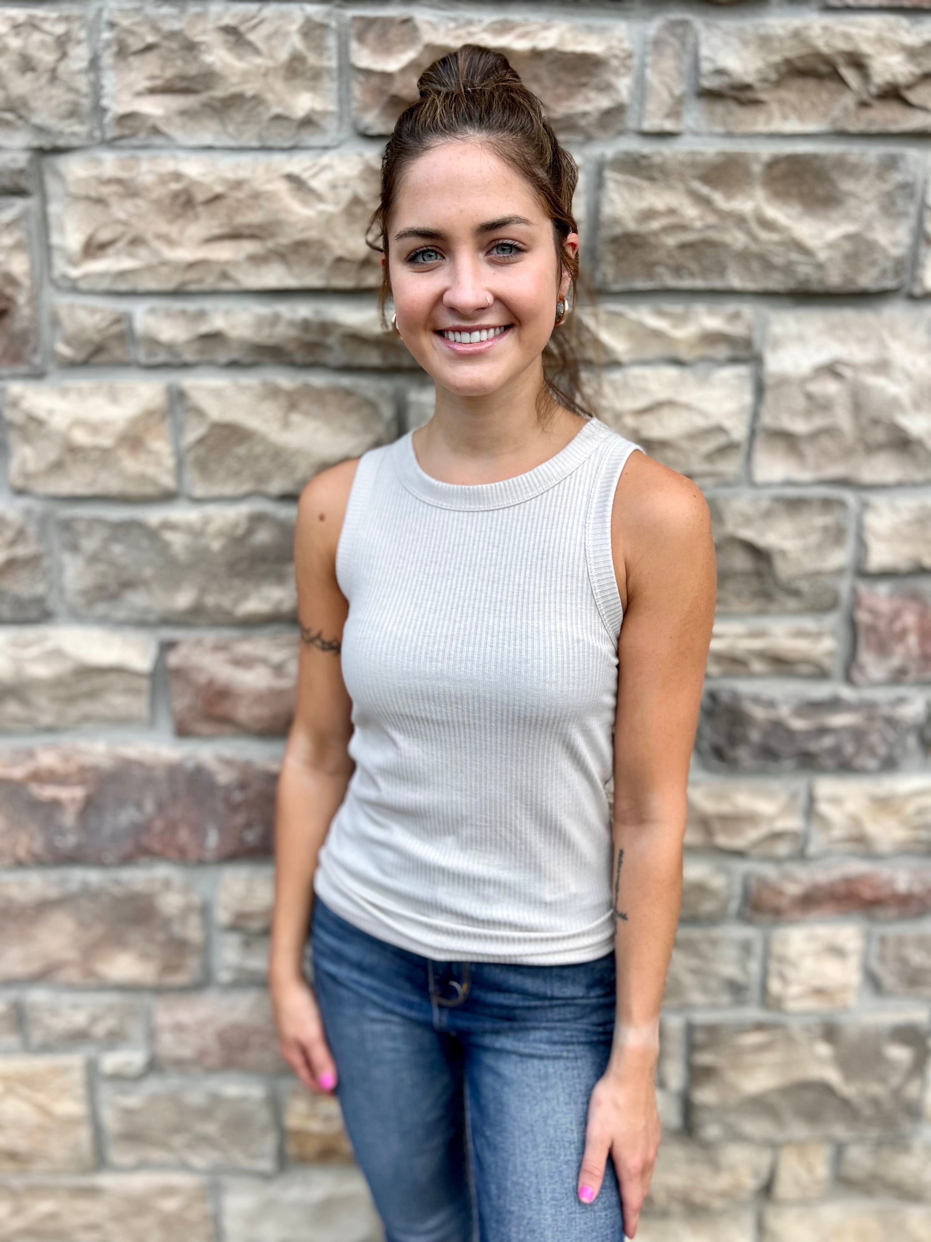 This Ribbed Scoop Neck Tank Top is perfect for any wardrobe. Crafted from a ribbed fabric, it boasts a scoop neckline for an ultra-modern look. Make a statement this season with this unique and stylish tank top.