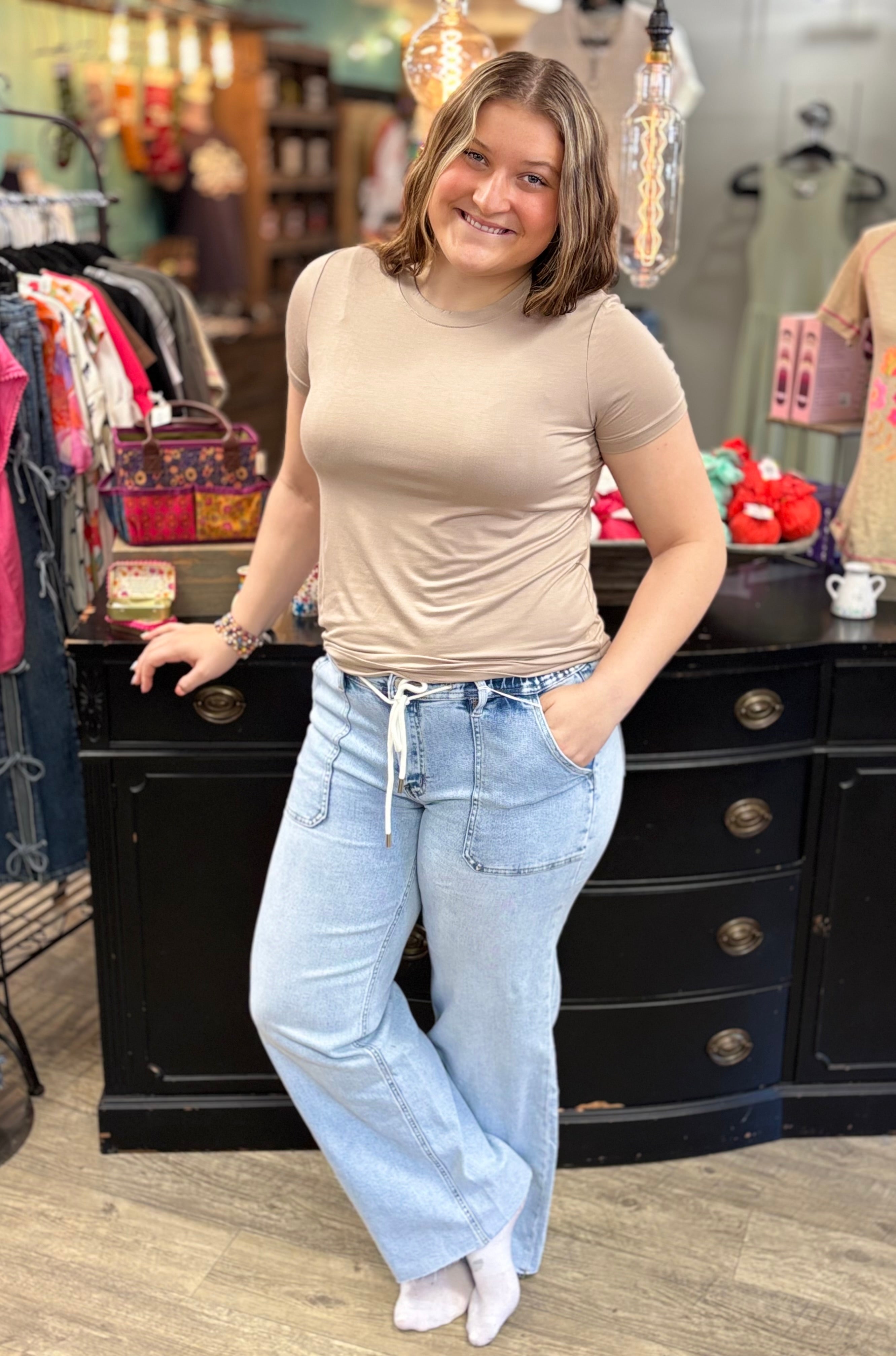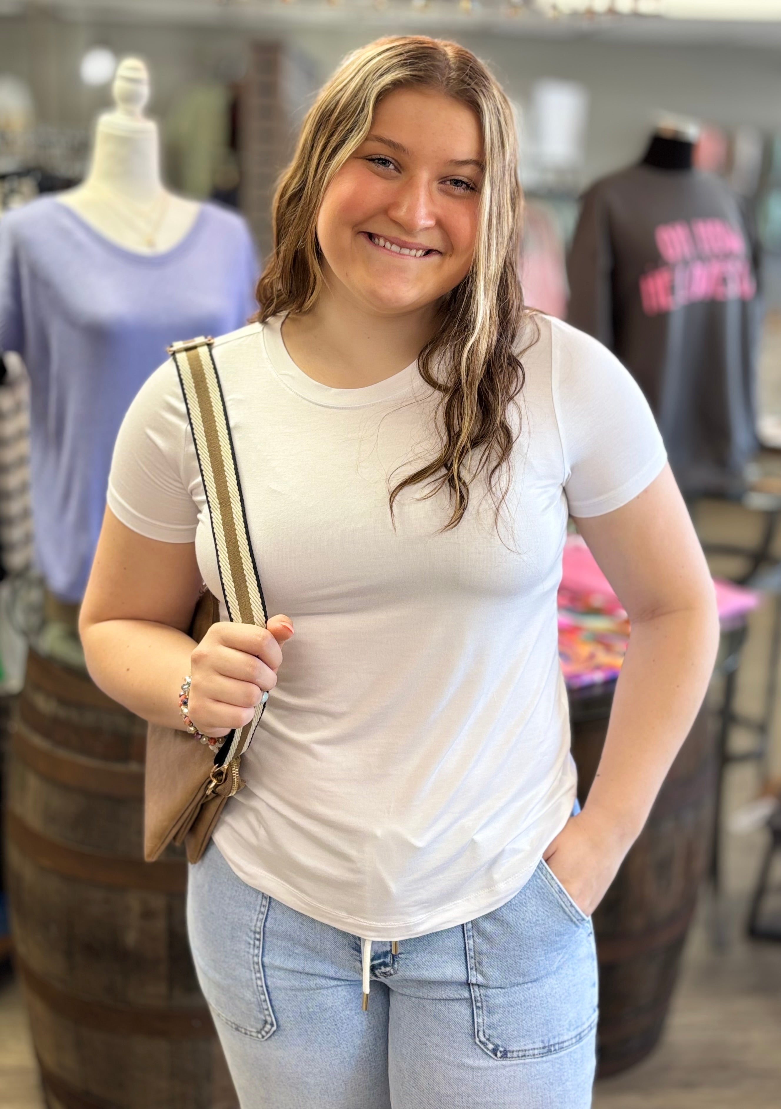 This short-sleeve basic modal top is your new go-to for comfort and style. Made from buttery soft modal fabric, it feels like a gentle hug against your skin. The simple, clean design makes it a versatile piece that pairs perfectly with anything, while the ultra-soft texture gives you that cozy, luxurious feel. It’s the kind of top you’ll never want to take off—perfect for everyday wear or layering!