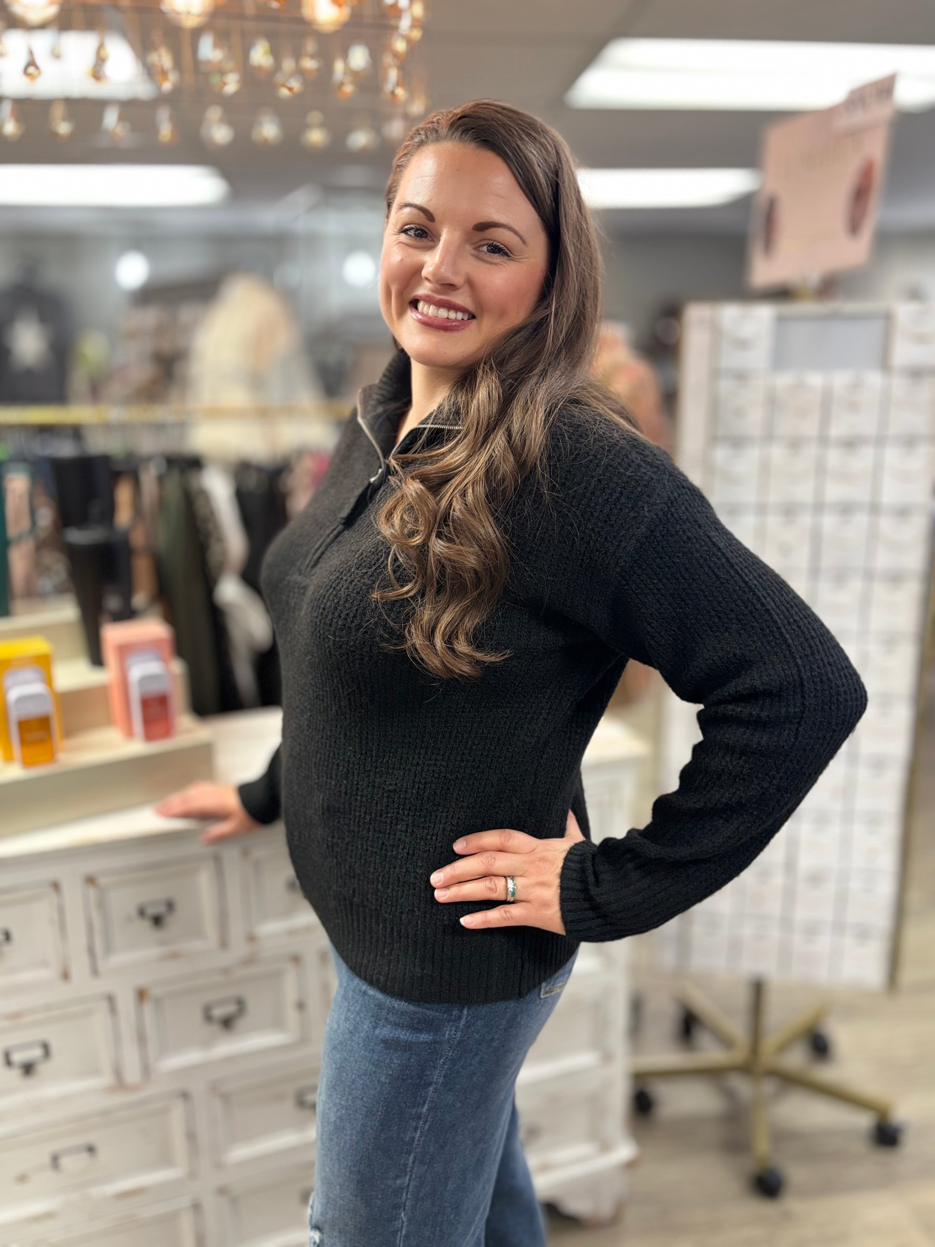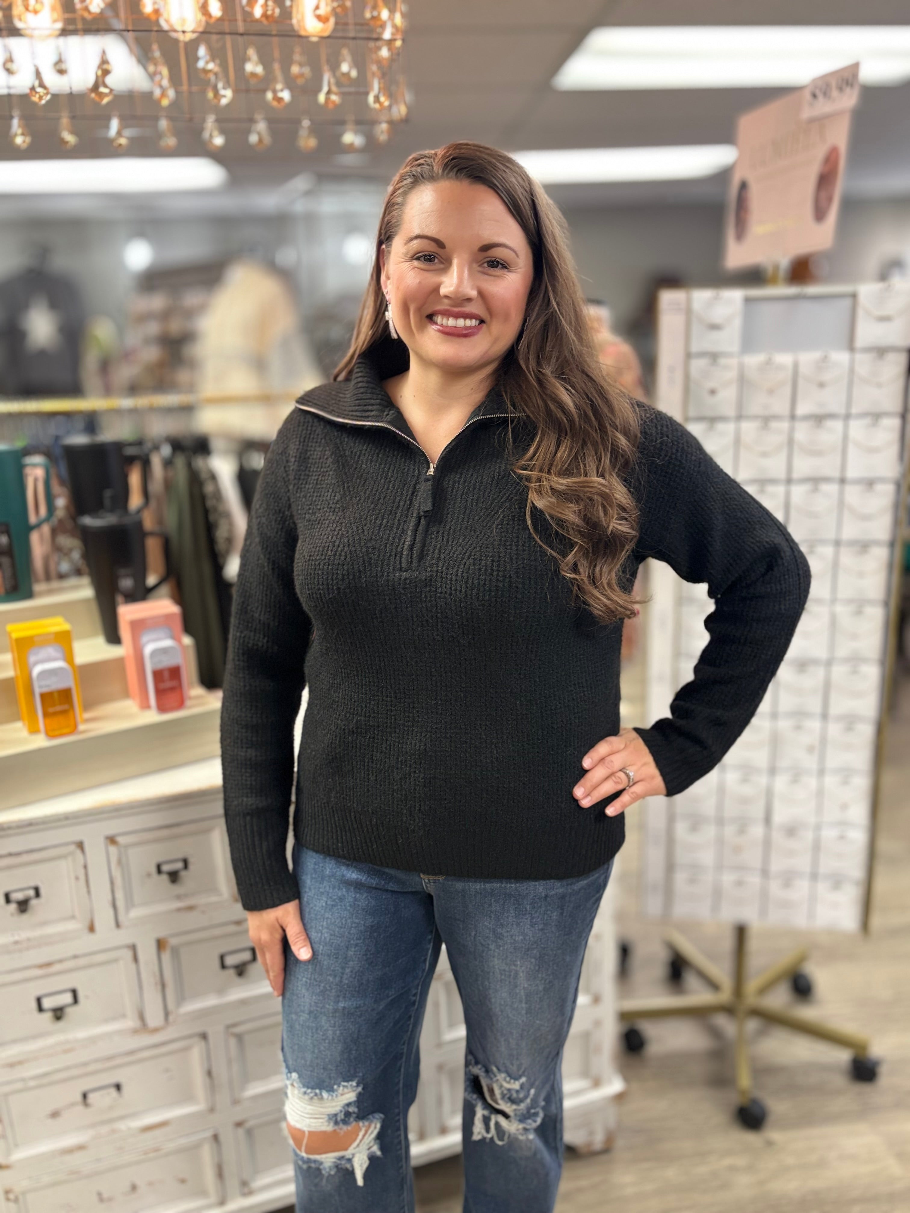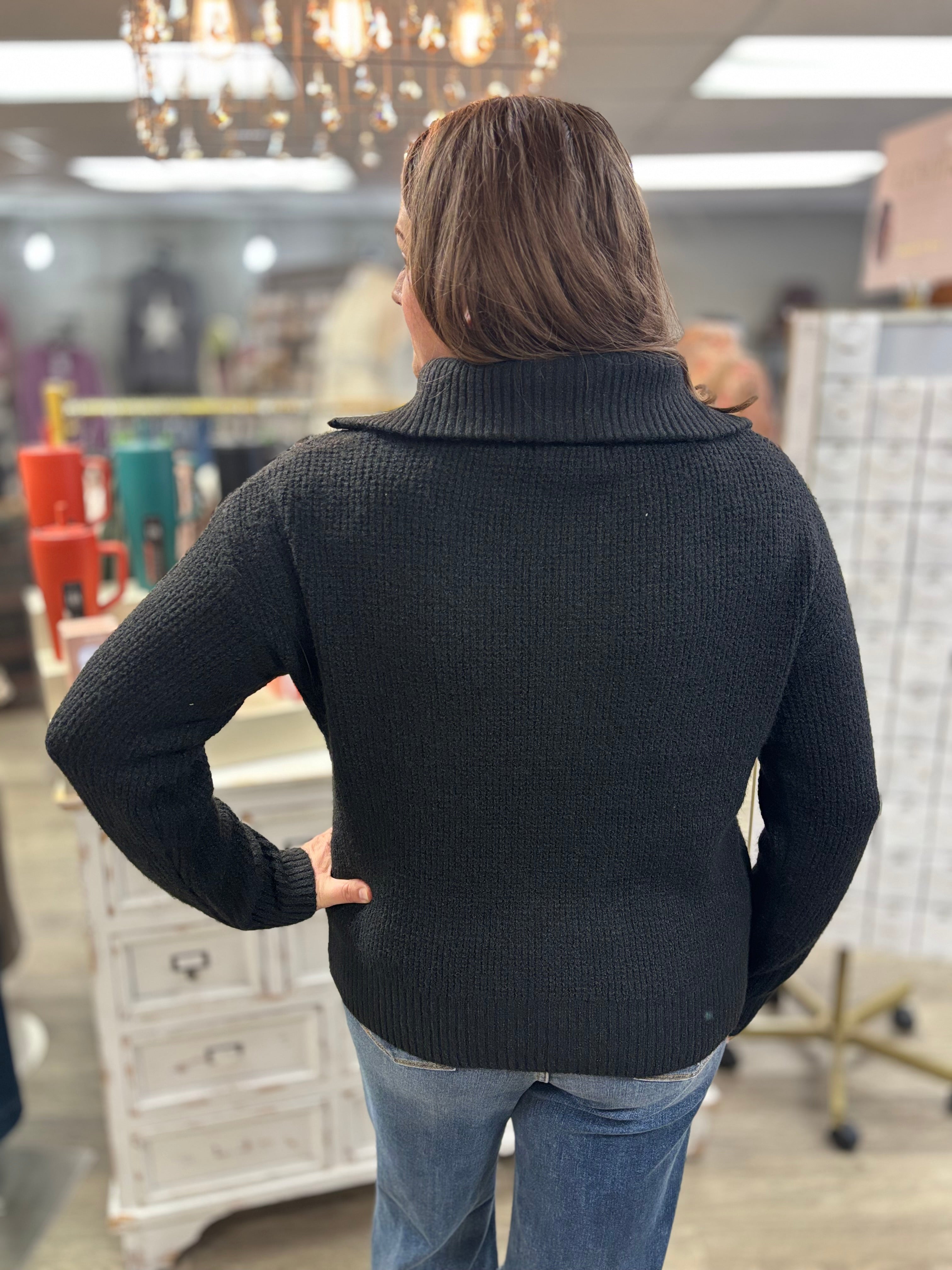 Stay warm and stylish in this half-zip sweater! Made from ultra-soft chenille, it’s cozy, comfy, and features a high collar for extra snug vibes—perfect for layering or wearing solo on chill days.