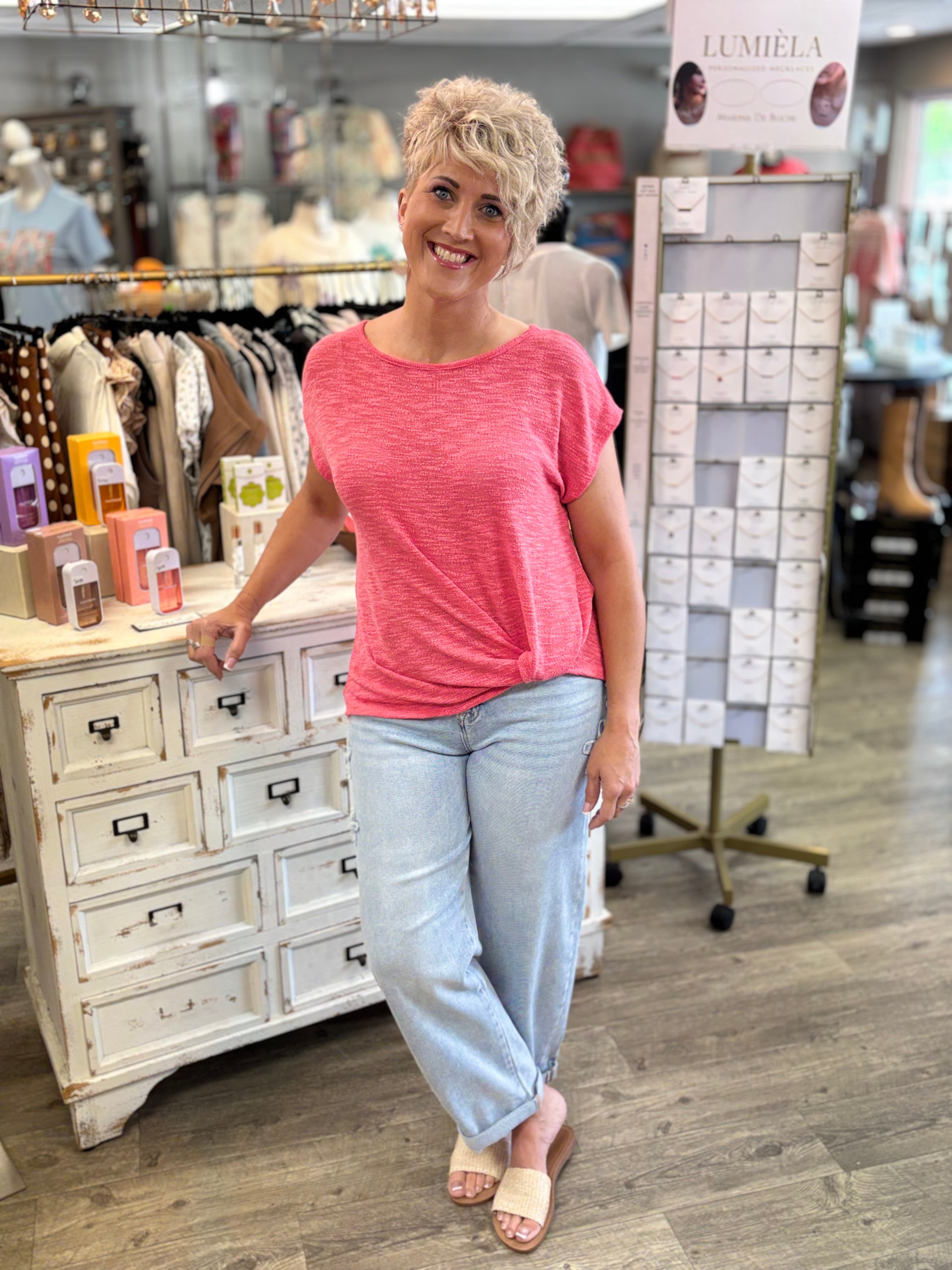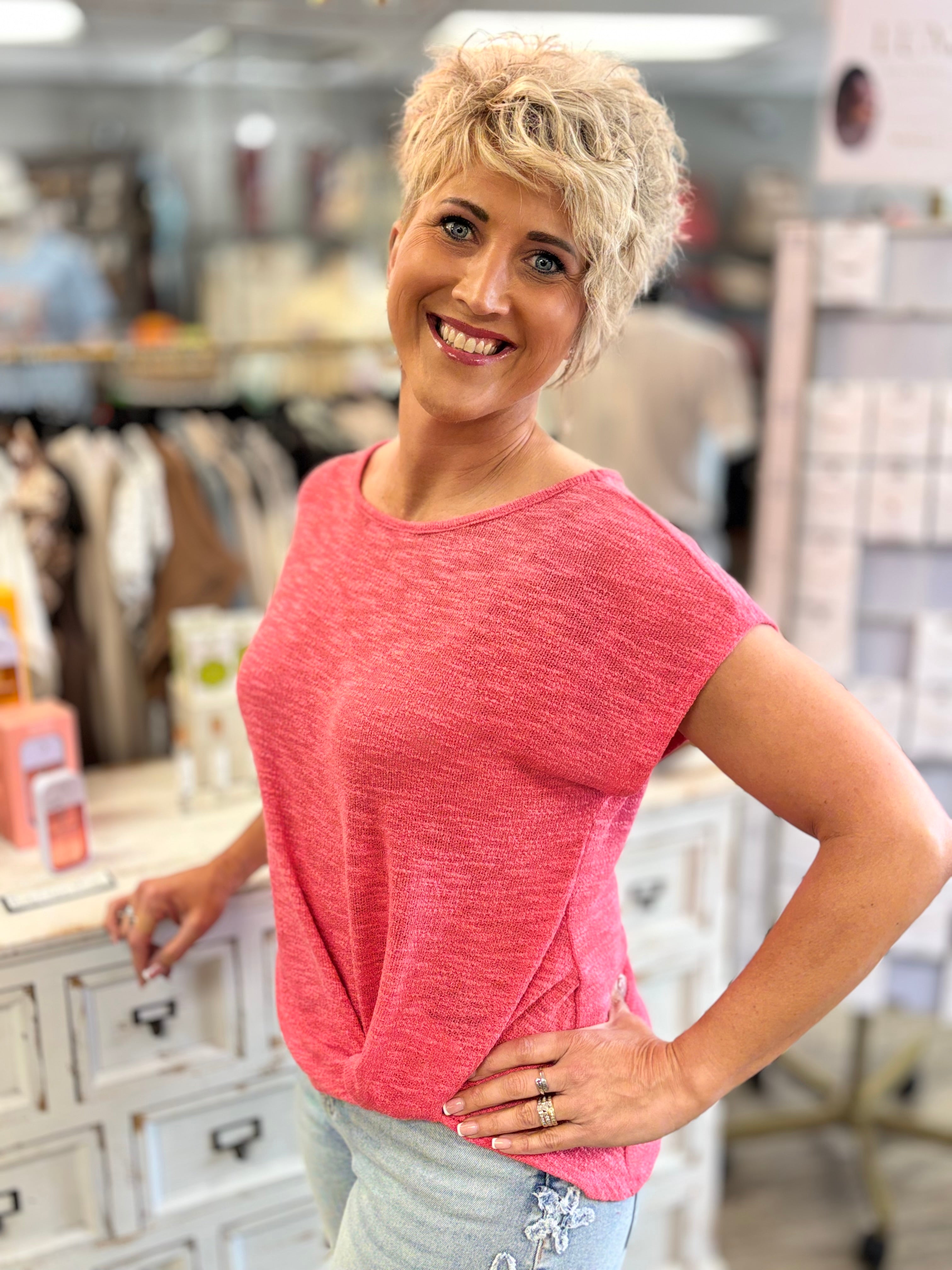 Sweet with a little twist, the Berry Sweet Twist Top is the perfect mix of flattering and effortless. Designed in a gorgeous berry hue, this lightweight short sleeve top features a front twist detail that adds shape and style in all the right places. Soft, stretchy, and easy to wear, it pairs perfectly with denim, shorts, or skirts for a look that’s cute without even trying.