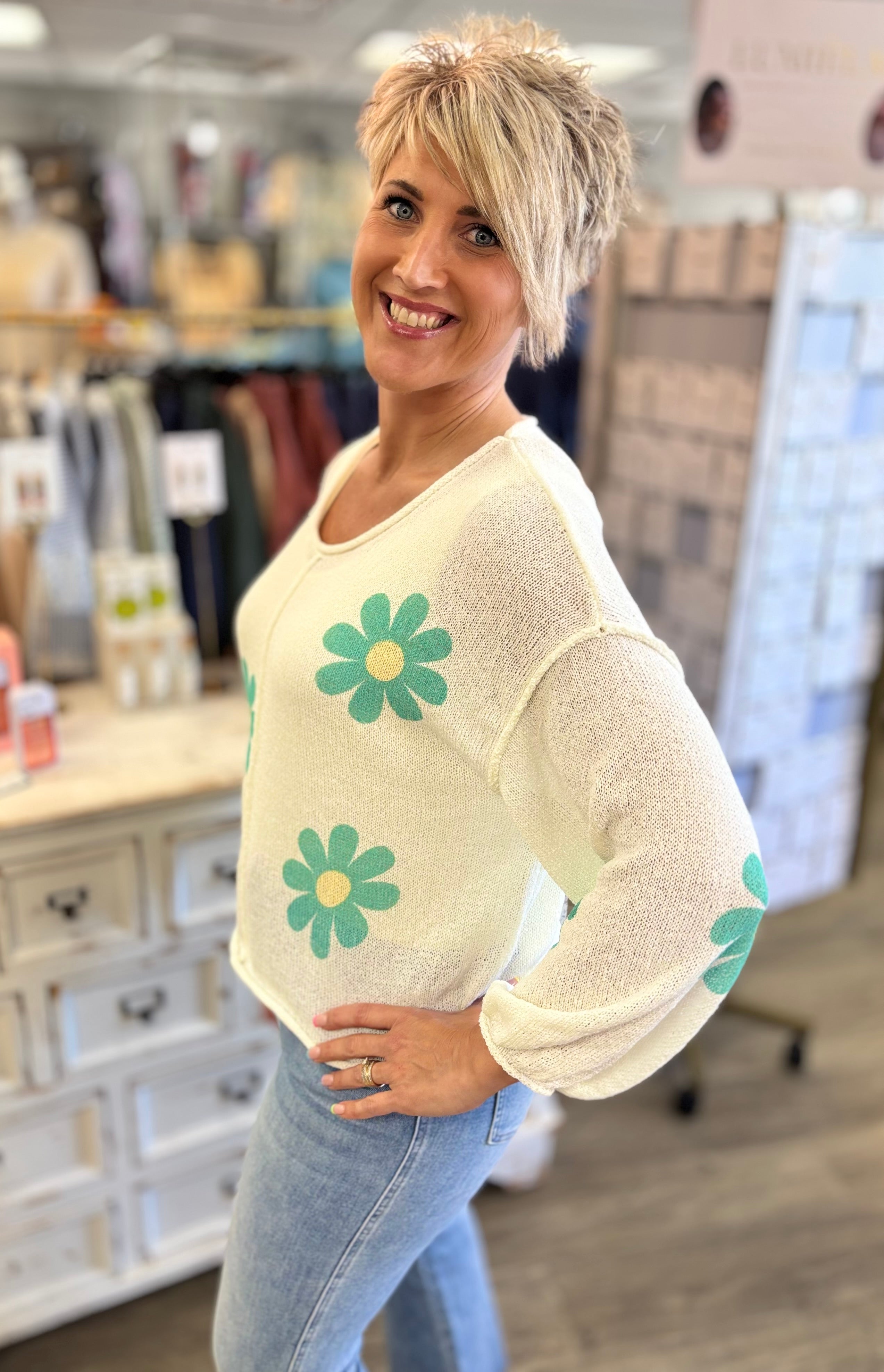 Fresh, feminine, and made for spring days. The Bloom Baby Bloom Sweater features a gorgeous mint and lavender color with soft floral details that instantly brightens your outfit. Lightweight and cozy, it’s the perfect sweater for transitioning into warmer weather.