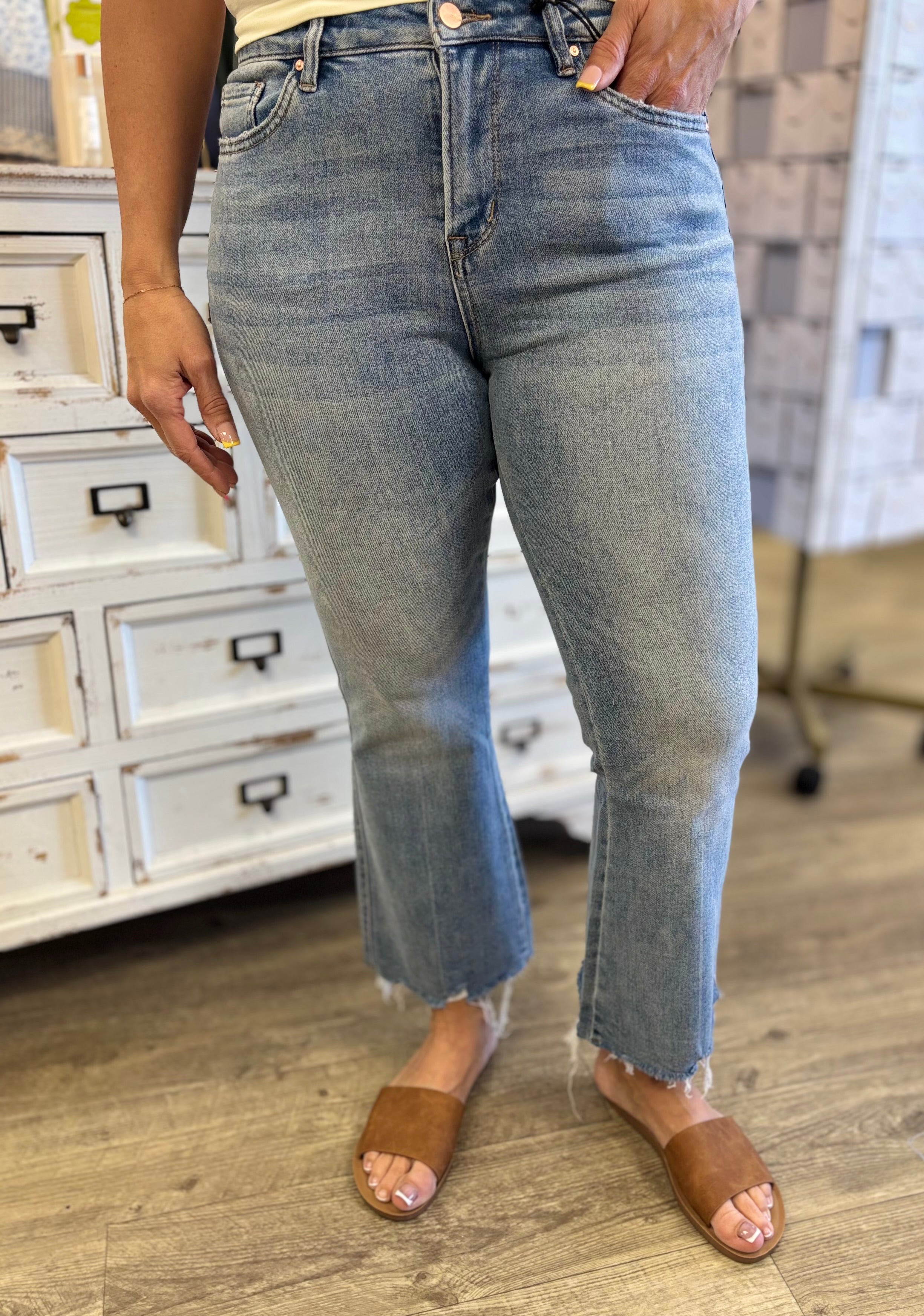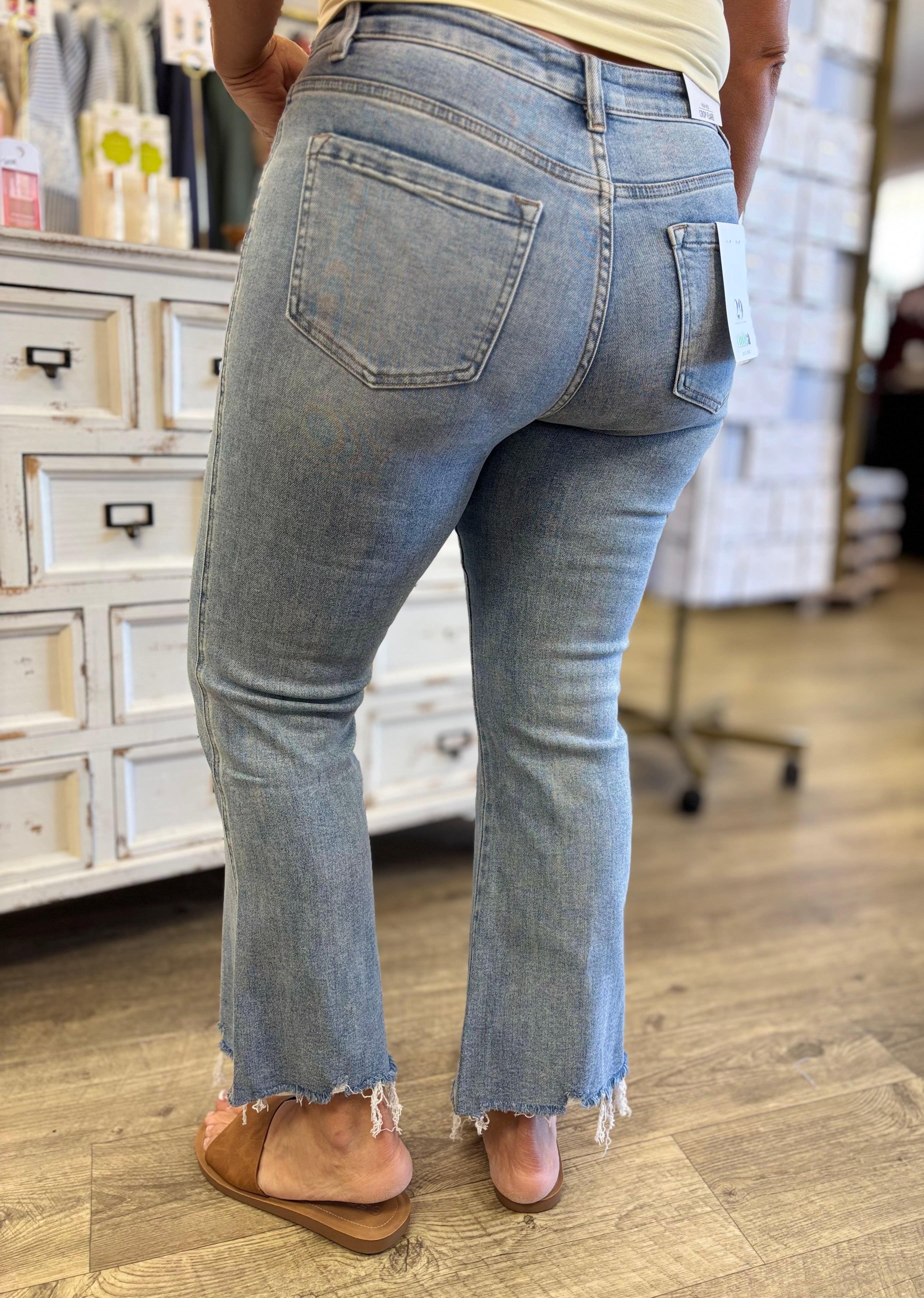 Meet your new go-to denim with a twist. The Kind of Iconic Crop Flare Jeans feature a flattering high-rise fit and a cropped flare leg with an uneven hem for an effortlessly modern edge.
