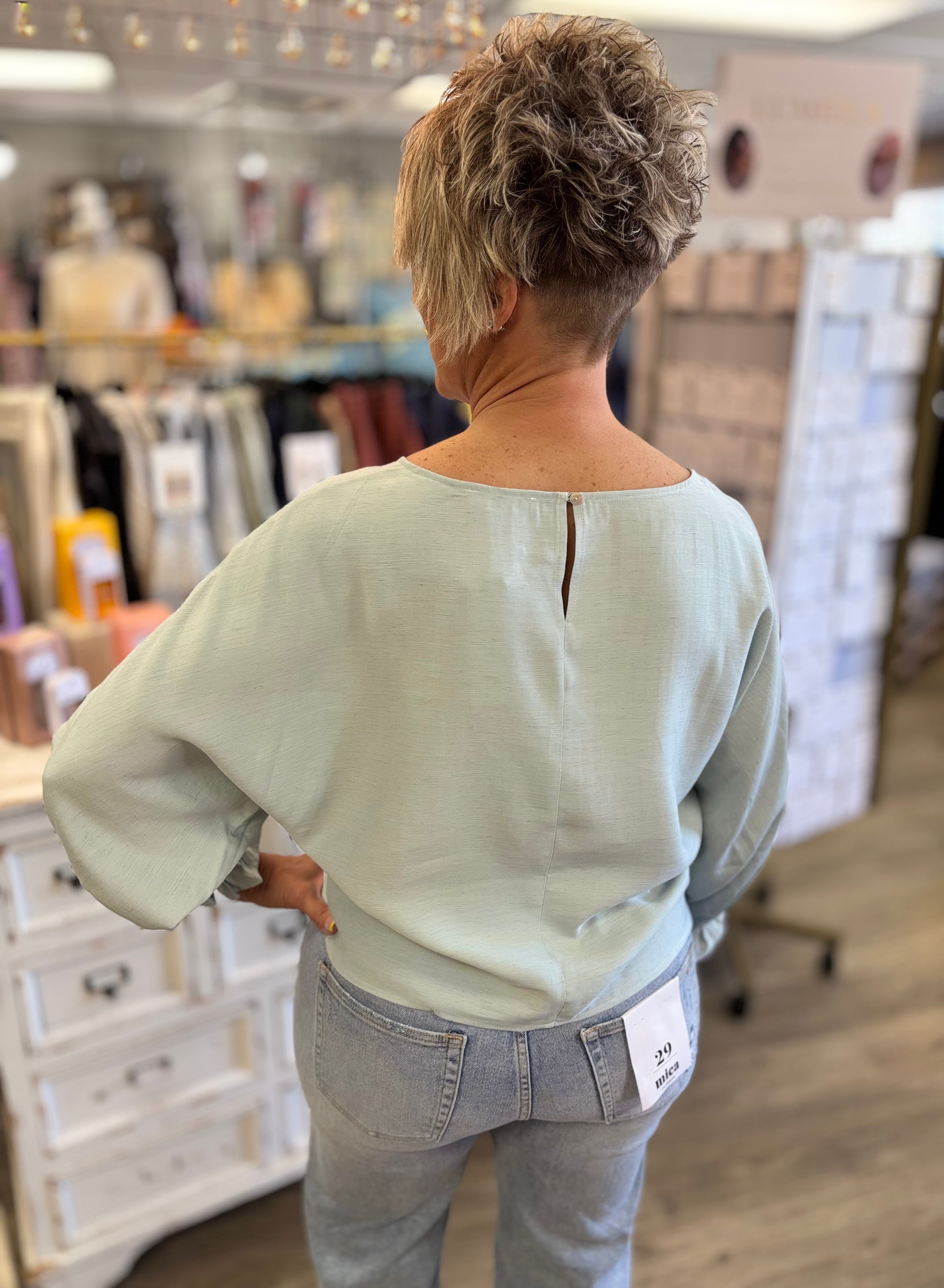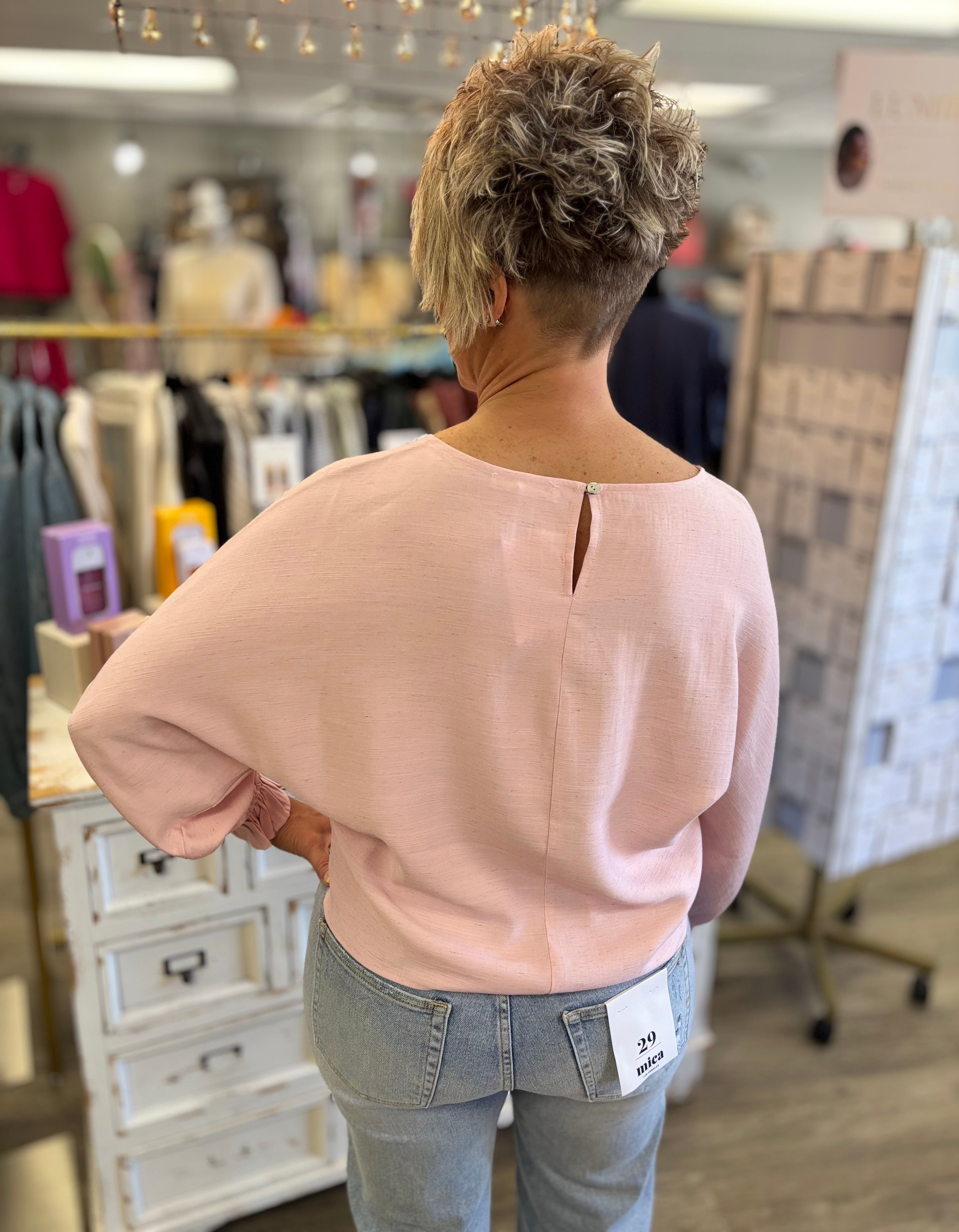 Polished, lightweight, and effortlessly chic, the Elevated Linen Blouse is the perfect top for dressing up your everyday style. Designed with flowy batwing sleeves and a soft linen-blend feel, it drapes beautifully for a flattering, relaxed fit. The ruffled cuffs add a touch of feminine charm, giving this blouse just the right amount of detail to stand out. Pair it with denim for an easy elevated look or style it with trousers for a more dressed-up outfit.