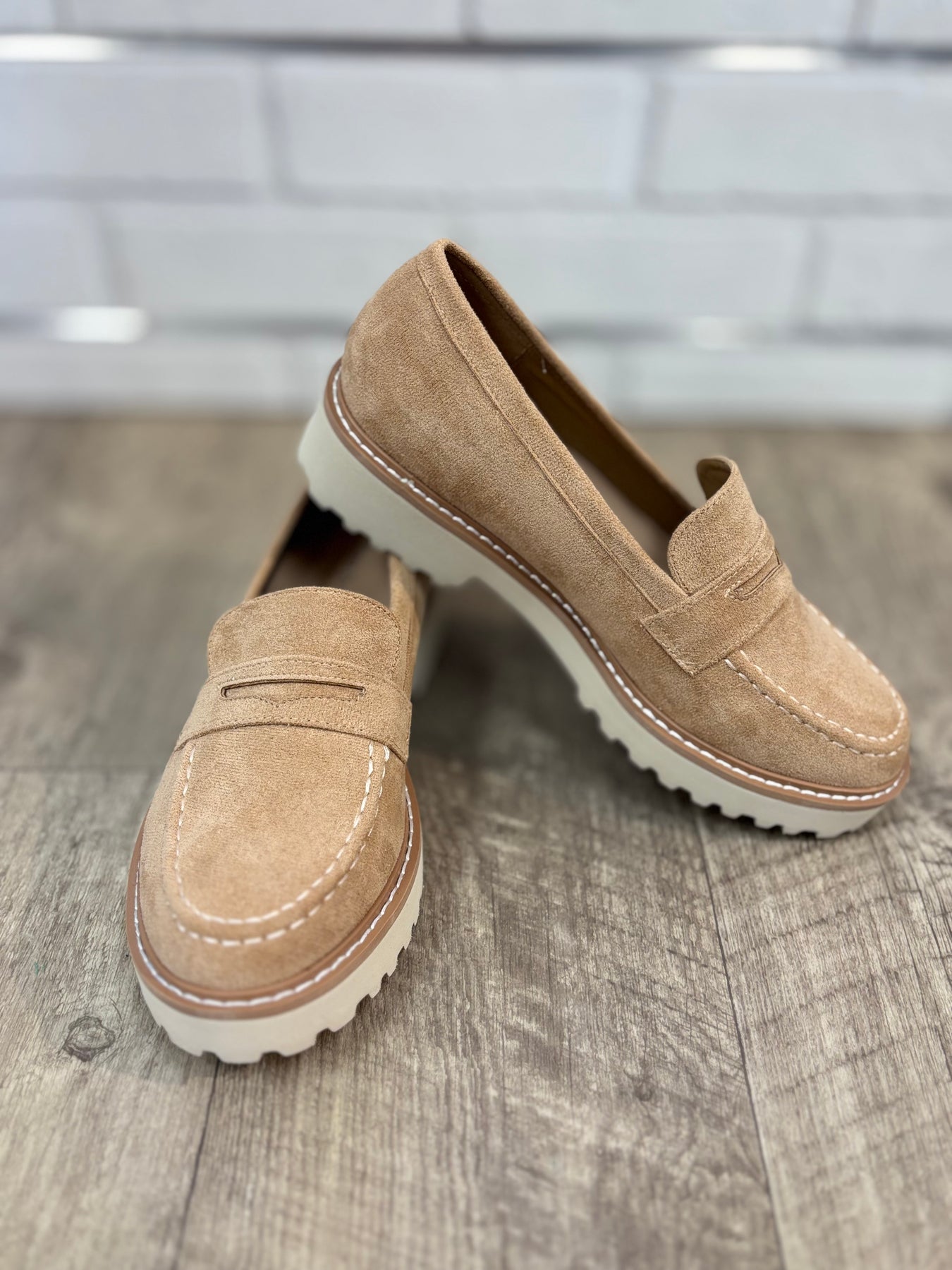 Slip into style and comfort with Pierre Dumas Mora Loafers. Crafted from soft taupe suede, these loafers boast a padded footbed for all-day wear and a 1" heel for just the right amount of height. Easy to slip on, these loafers are the perfect combination of fashion and function.