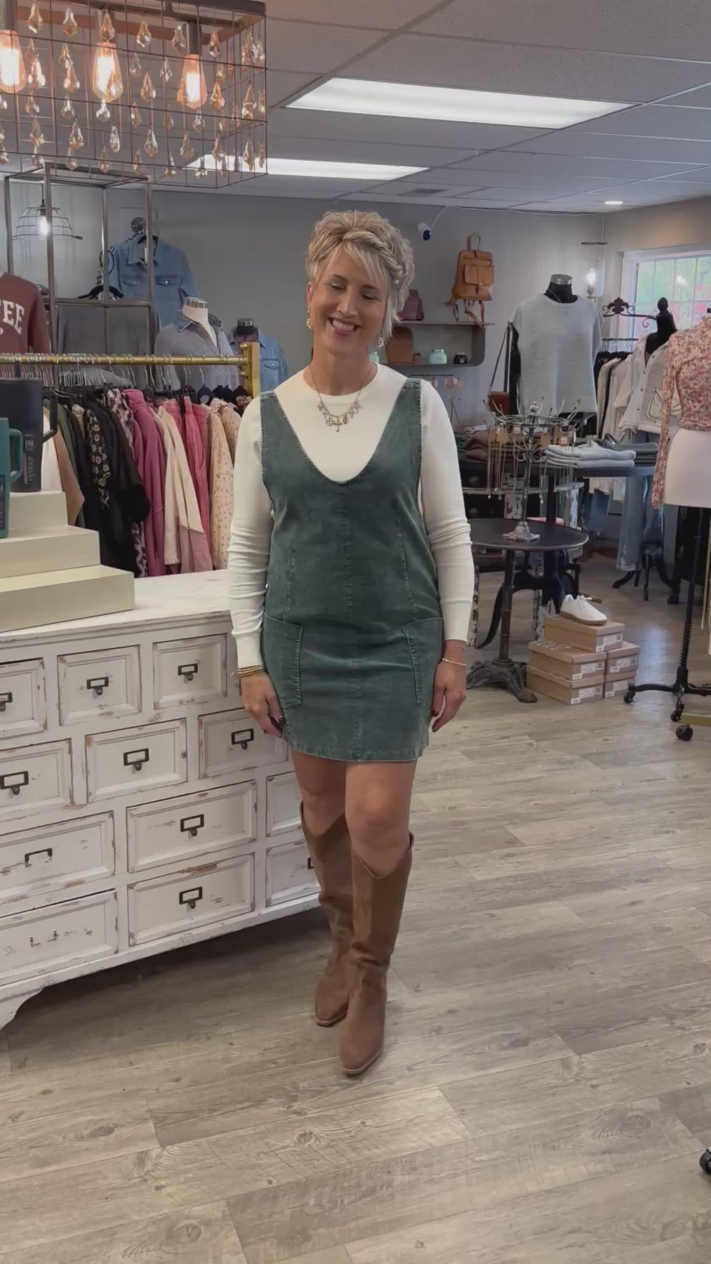 The Corinne Corduroy Dress is effortlessly cute and cozy. Made from soft snow-wash corduroy, it features adjustable straps for the perfect fit and front pockets for a playful, functional touch. Perfect for layering over tees or sweaters for a relaxed, boutique-ready look. Pair it with boots for a chic, layered look that’s perfect for fall and winter days.