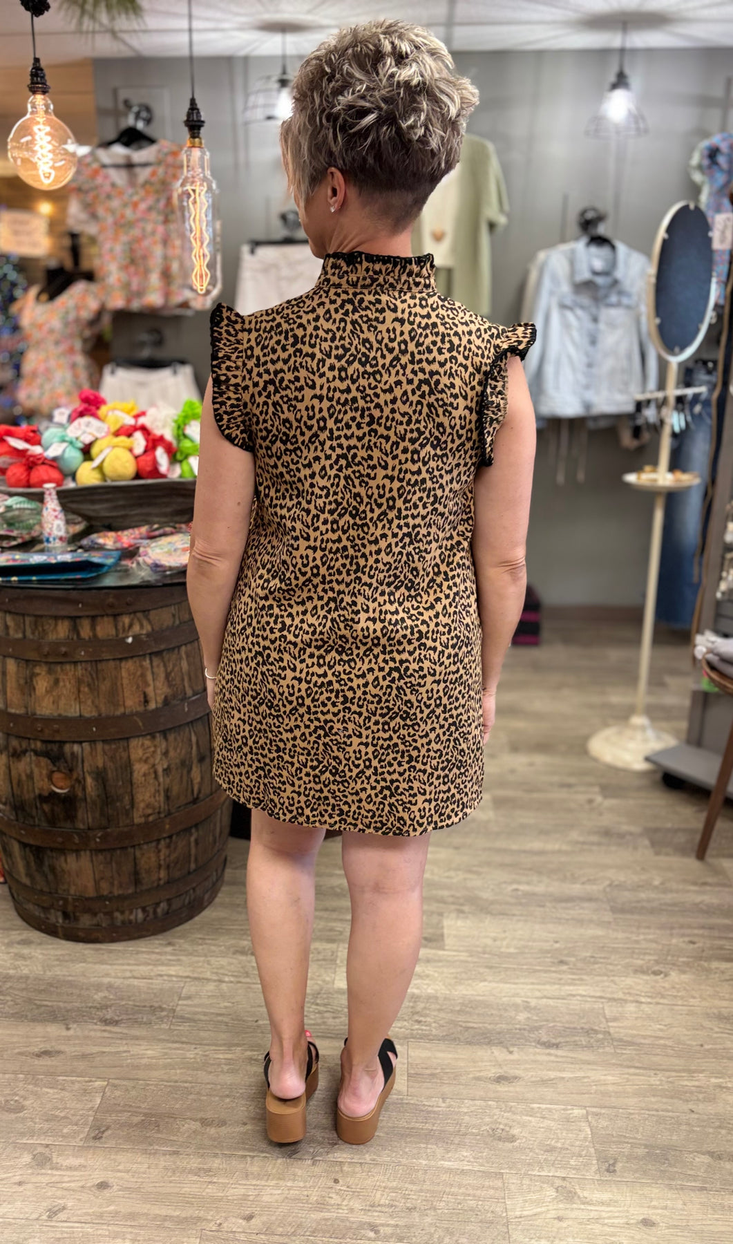 Go bold in the Wild Thing dress. This button-down leopard print dress is equal parts fierce and fun, featuring flirty ruffle sleeves and handy pockets (yes, pockets!). Effortless to throw on and guaranteed to turn heads—wild, but make it chic.